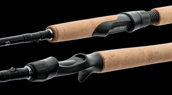 The clean designs and state of the art construction put these KAGE Bass Rods in the hands of anglers ranging from the most serious weekenders to accomplished bass pros. The fit and finish of these fishing tools are impeccable. The matte black look and fine wrapping evoke quality. The blank constructs are tailored for the specific tasks demanded by today’s bass fisherman. There are four Swimbait designs, an A-Rig and Magnum Spoon design to go with four spinning and four casting designs. The high tech Fuji Alconite Guides are handsome yet smooth as silk, braid friendly, tangle proof and rod-locker tough. The cork handles are contoured to provide hours of comfort. Daiwa’s new KAGE Bass Rod Series will rival the best built bass rods on the market. With flawless construction, beautiful cosmetics and practical task specific designs, any serious bass angler would be proud to put a rod of this quality on the deck of the boat.