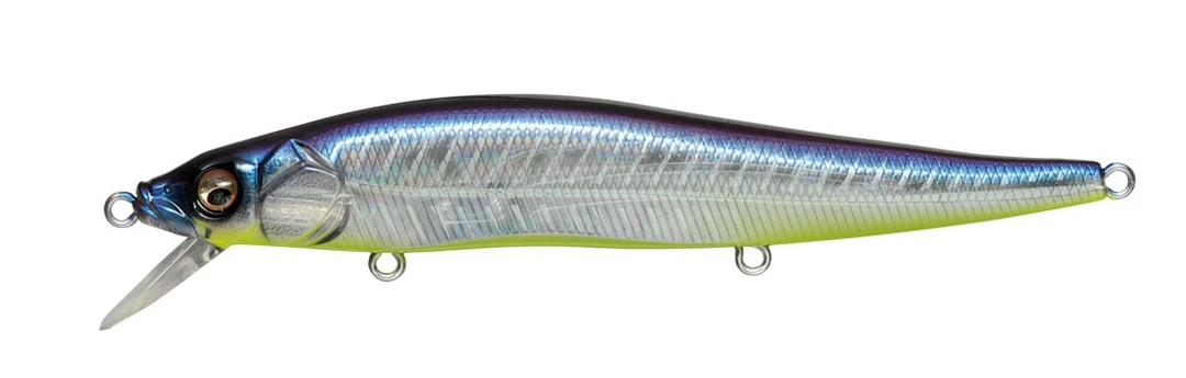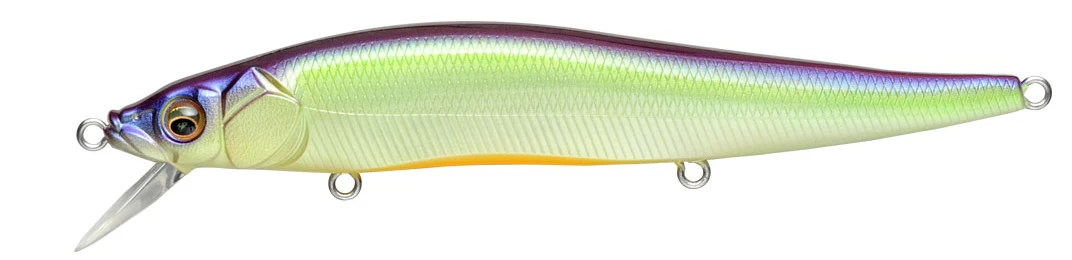 The profile, one-of-a-kind darting action, balancing system and realistic color patterns all contribute to the incredible fish-catching ability of the ONETEN. The tungsten Multi-Way Moving Balancer System (PAT.) not only fuels unparalleled action and huge flash, but also powers bombing casts. This deadly package is finished off with three Megabass original Katsuage Out-Barb treble hooks, designed to increase hookup percentages with superior light-wire penetration.