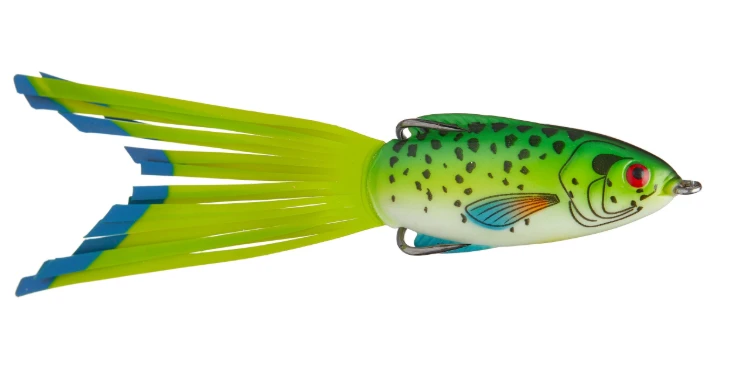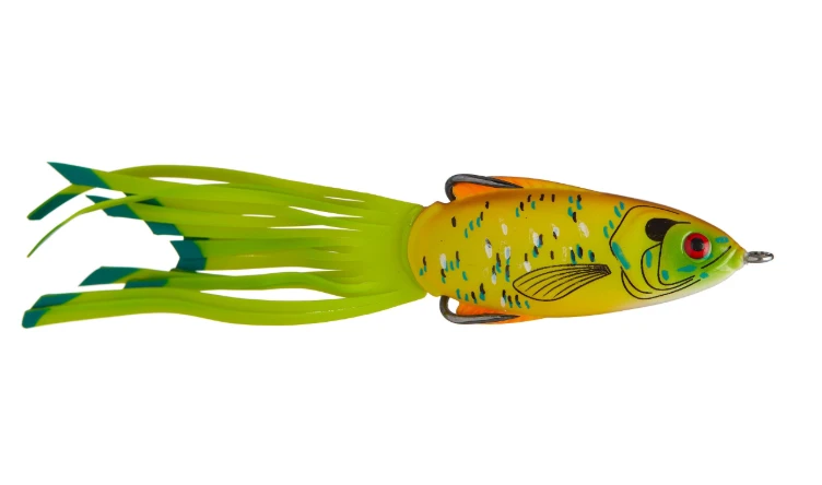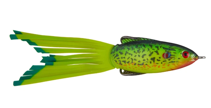 Fitted with a super long rubber skirt, the Strike King Hack Attack Pad Perch can be feverishly marched over vegetation to draw knee-jerk reaction strikes, or meticulously crawled to encourage lethargic predators. Backed by a super-strong double frog hook, the Strike King Hack Attack Pad Perch has been carefully refined, rigorously tested, and proven by one of the best in the business when it comes to fishing cover.