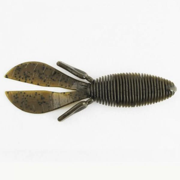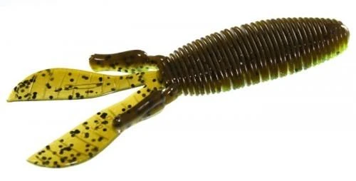Pitching and flipping has a new go-to bait. D Bomb is a bulky 4” creature bait with a unique ribbed body that displaces lots of water resulting in a straight fall. The tails sail when left connected or flap wildly when separated. The body is thinner where the hook comes out for easy hook sets but has a thicker head so the bait stays on the hook. 6 per pack