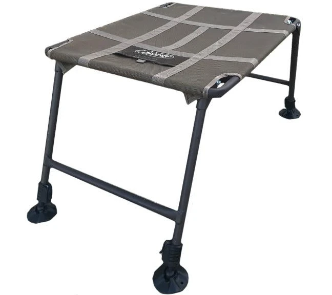 The Final Stand has some of the same great features found on the Invisi-Lab. The Independently adjustable legs allow for a stable platform on any surface and extend from 18 to 34 inches. The mesh bottom is not only comfortable for your dog but also allows the water to drain easily. The stand come with tent stakes (located underneath the logo on the platform) that can be used to secure the stand on dry ground. This will come in handy when using the stand for training. Teaching climb, stay, or place will be much easier with the addition of the Final Stand. Weighing in at 10 lbs. this stand can be carried in each day, but rugged enough to leave out all season. Just as great for training as it is hunting. The Final Stand after all, this is the final stand you will every have to buy.